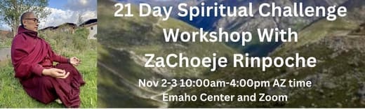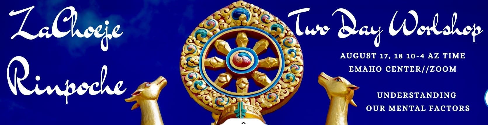 Please join Geshe Lobsang Thursday March 14 7:00 Emaho center and zoom. Following in the footsteps of our master ZaChoeje Rinpoche we’ll deepen our understanding of meditation studying from Rinpoche’s book Deep Resilience, Tibetan Wisdom for Building inner strength. ISBN 979895118803, edited and arranged by Alxe Noden. Geshe will begin guiding us in the ways meditation leads to our incredible source of inner strength. Inner self reflection brings to us calm and wellbeing.